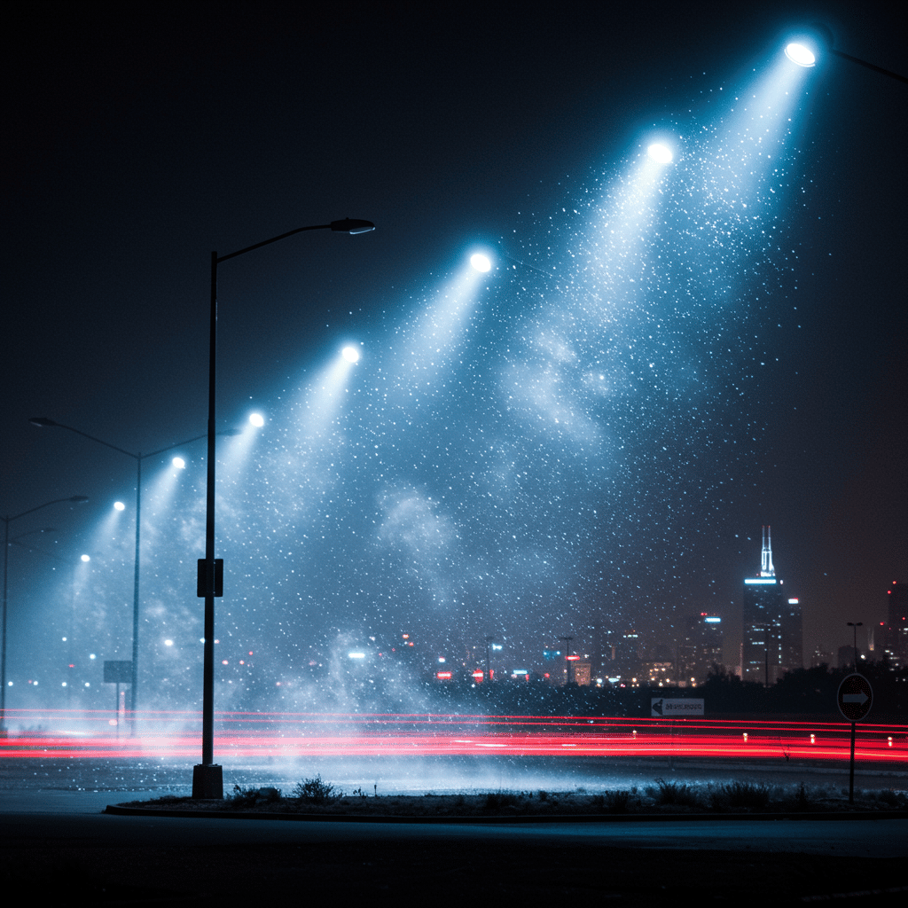 This paper explores a highly speculative, yet conceptually intriguing, idea: using specially engineered light from cooler temperature sources to neutralize and settle negatively charged atmospheric dust particles.
