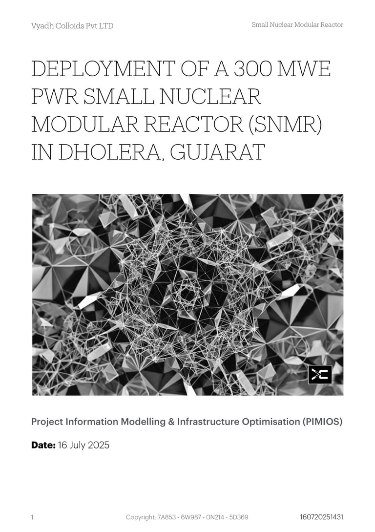 The proposal report for the 300 MWe Small Nuclear Modular Reactor (SNMR) in Dholera, Gujarat. It covers the PWR design, location rationale, PIMIOS integration, energy transition analysis, and the futuristic needs of the Dholera Special Investment Region.
