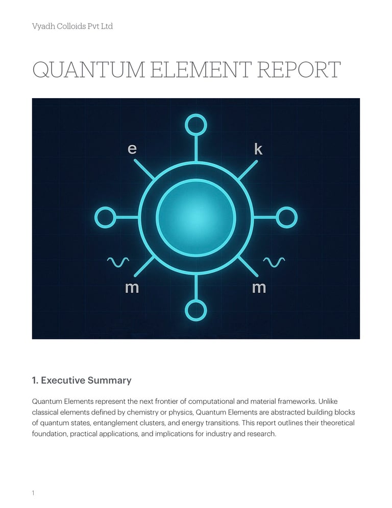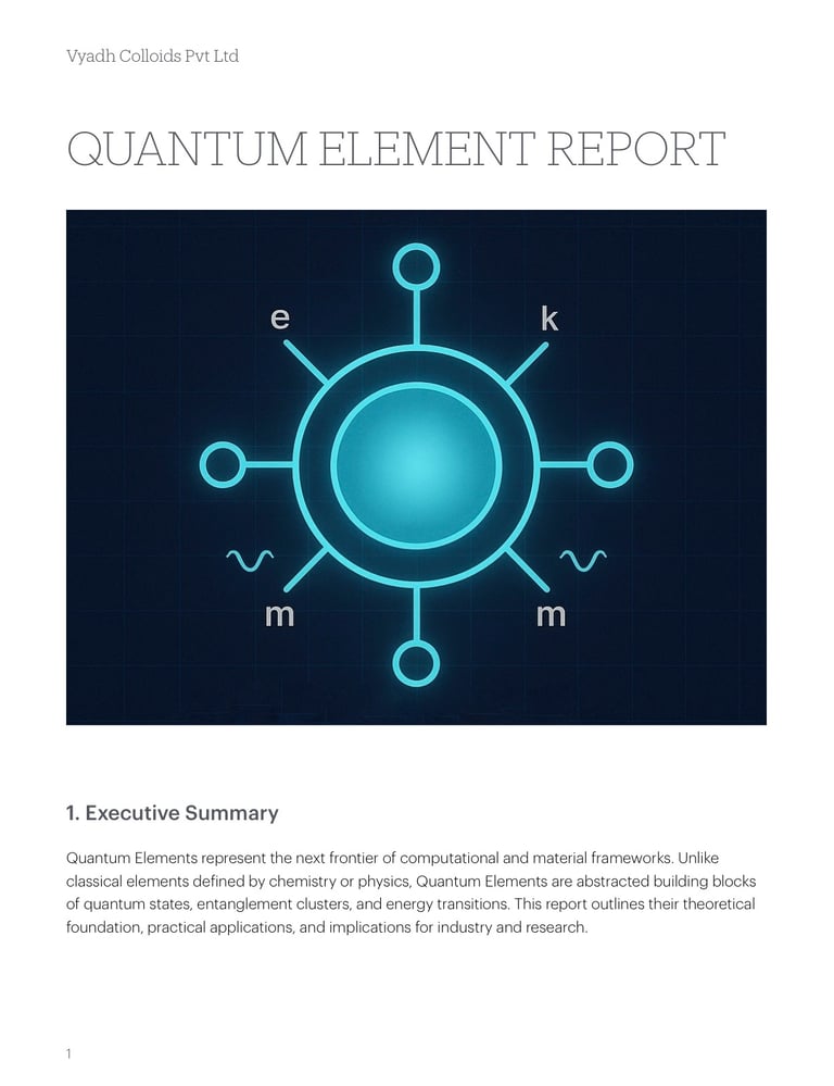 Quantum Elements are abstracted building blocks of quantum states, entanglement clusters, and energy transitions. This report outlines their theoretical foundation, practical applications, and implications for industry and research.