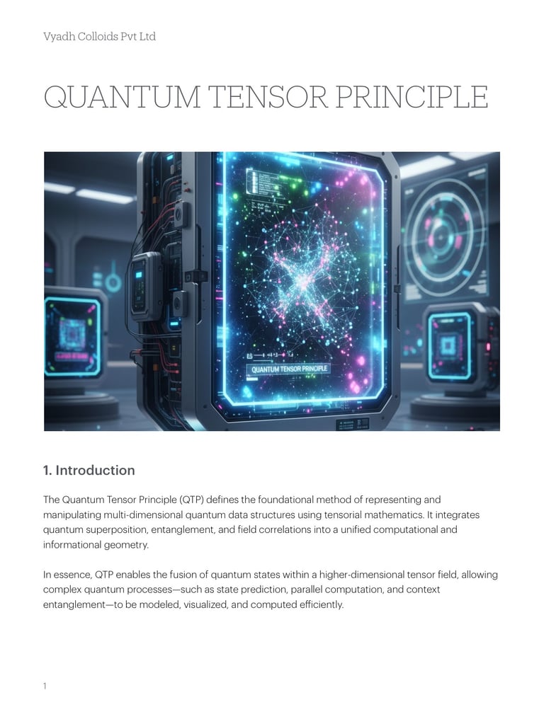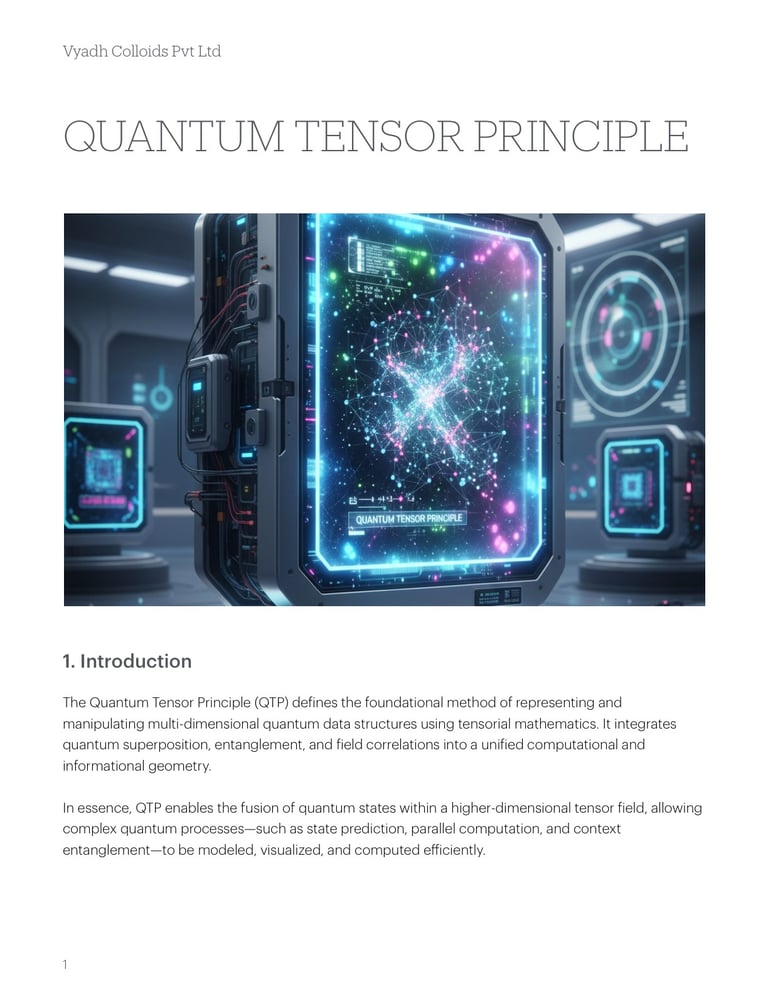 The Quantum Tensor Principle encapsulates the multidimensional essence of quantum reality. It elevates the understanding of superposition and entanglement from linear phenomena to tensorial architectures, enabling next-generation quantum intelligence and computation systems.
